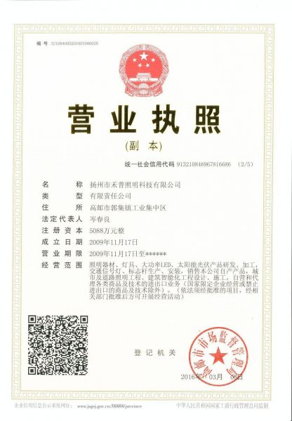 扬州市禾普照明科技有限公司网站由中国电气招标网制做维护。内容真实性及解释权归扬州市禾普照明科技有限公司负责。