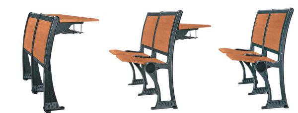 e. 内藏折叠式写字板,写字架原材料采用铝合金,写字板采用三聚氰氨板,可收藏于扶手脚内,合理利用使用空间。