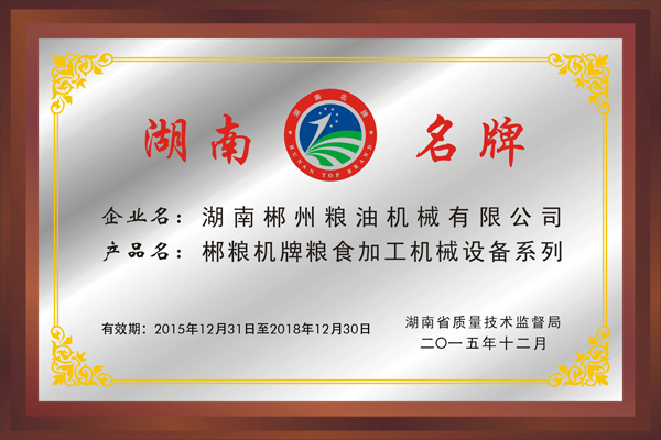 资质名称: 全国碾米机械知名品牌 |