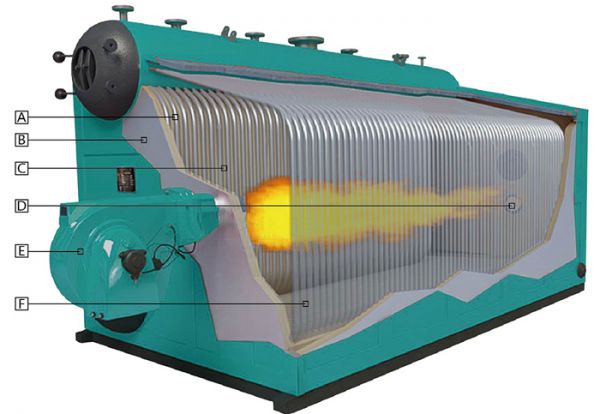 燃油、燃气、燃煤经过燃烧产生高温烟气释放热量,高温烟气先进入炉膛,再进入前烟箱的余热回收装置,接着进入烟火管,最后进入后烟箱烟道内的余热回收装置,高温烟气变成低温烟气经烟囱排入大气。由于余热锅炉大大地提高了燃料燃烧释放的热量的利用率,所以这种锅炉十分节能。 |