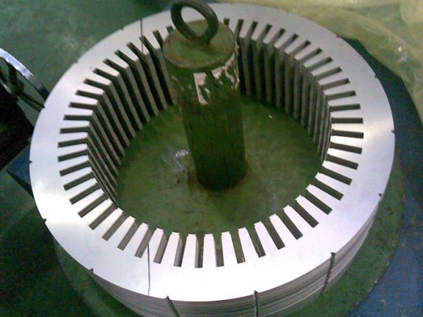 15、采用专用模具后,可在冲定子槽的同时切下定子圈,大大简化了冲片加工工艺。 |
