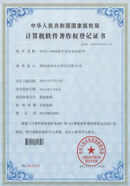 计算机软件著作权登记证书 WSN-8100