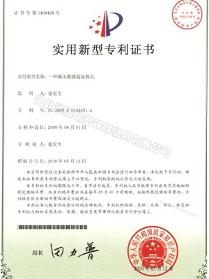 资质名称: 实用新型专利证书 |