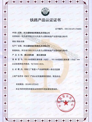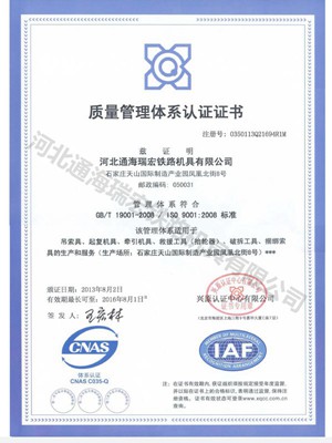| 持证单位: 河北通海瑞宏铁路机具有限公司 |